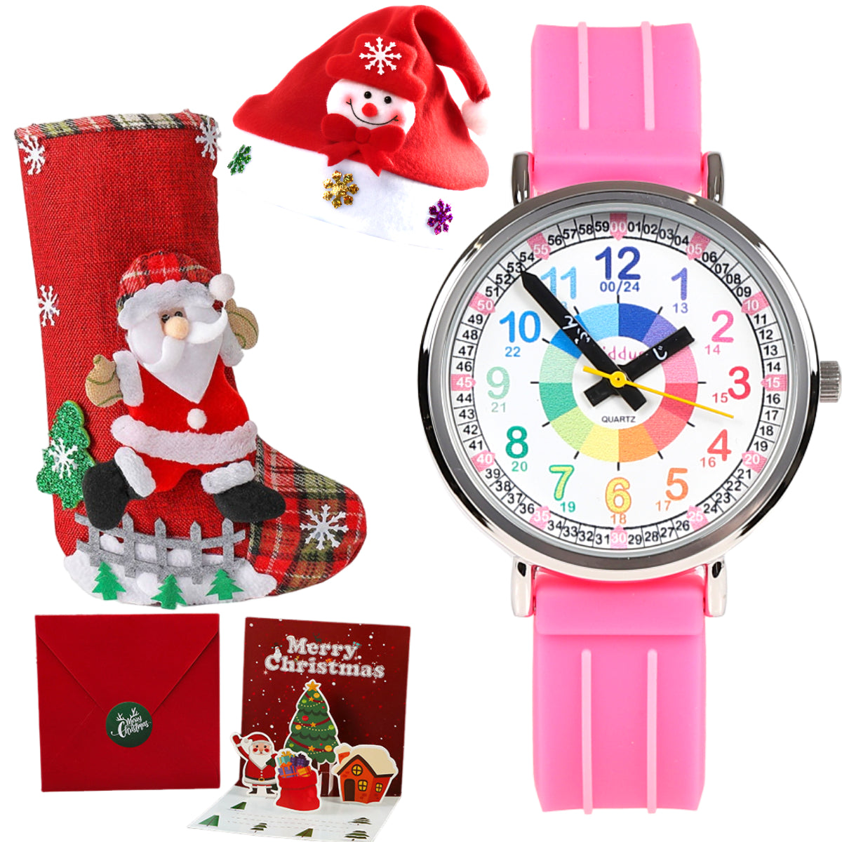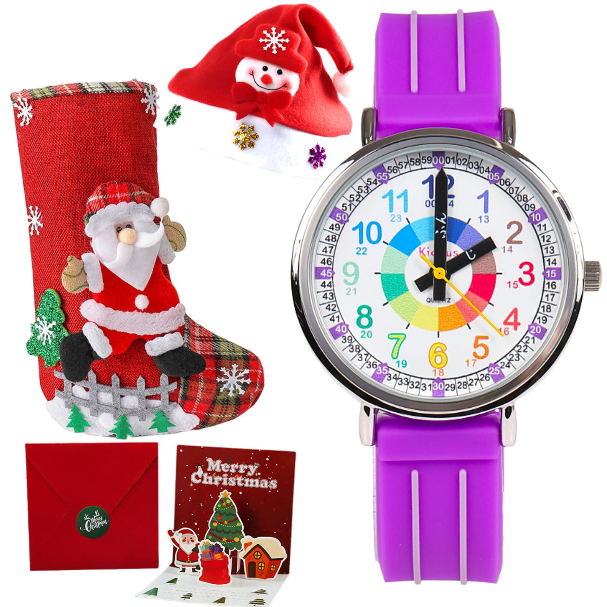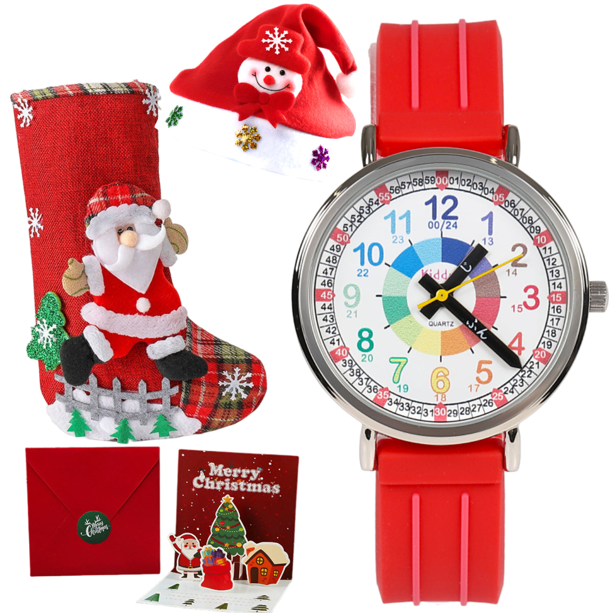 — セット内容 — 1 クリスマスソックス 2 立体的なクリスマスカード 3Dカード(封筒・メッセージ用紙付き) 3 クリスマスキャップ 4 クリスマスラッピング(ギフトシール仕上げ) + キッダス 知育腕時計 1本 - 🎅【 写真映えも飾り付けもこれでOK! 】